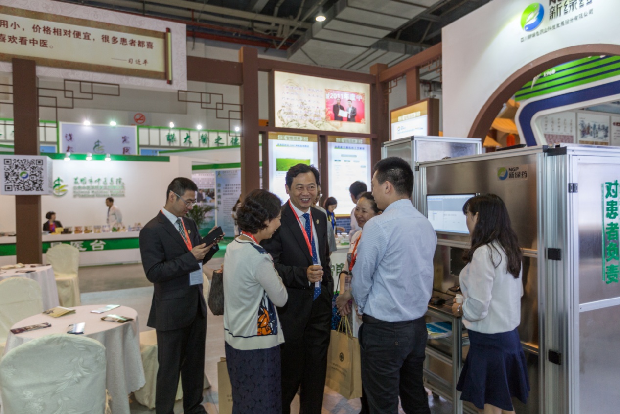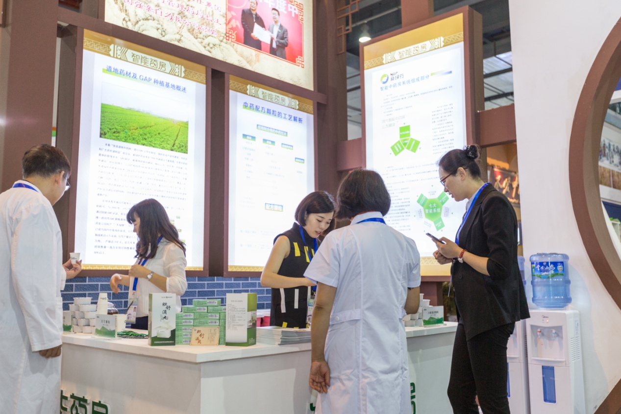 展區內,新綠藥進行了全自動智能中藥房、公司産品(GAP基地藥材、精制中藥飲片、中藥配方顆粒、膽舒滴丸等)、宣傳資料(産品三折頁、公司畫冊等)的擺放與現場講解。