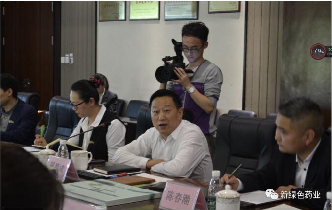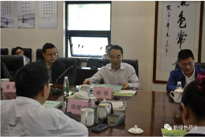 謝強書記一行先後考察了新綠色博物館、智能中藥房、藥廠車間,對新綠色全産業鏈質量管控模式給予了高度肯定,並與新綠色周厚成董事長一行舉行了座談會。