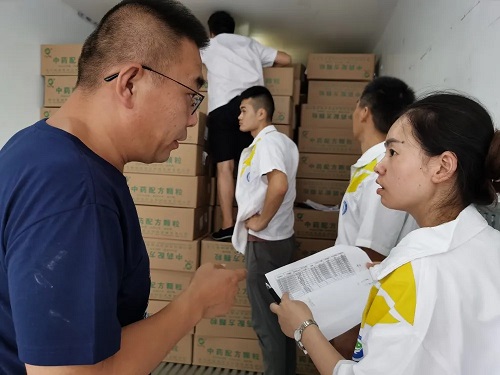 爲確保防疫中藥配方顆粒能夠在第一時間運往新疆,倉儲物流中心全體工作人員廢寢忘食,連夜開展制單、揀貨、複核、裝車、發運等系列工作,陸續安排5輛貨車專車向新疆運送防疫中藥配方顆粒。