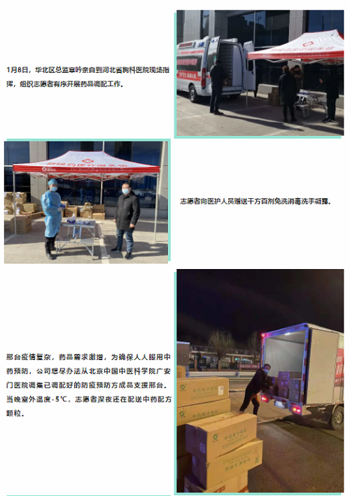 爲保障一線防疫、抗疫中藥配方顆粒的供應,駐守在河北省胸科醫院與南宮市中醫院的“流動應急智能中藥房”與新綠志願者們24小時待命,爲生命護航。