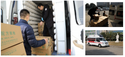 上午11時30分,在武漢抗疫中發揮重要作用的“流動應急智能中藥房”搭載著中藥配方顆粒、口罩、手套、千方百劑免洗消毒洗手凝露等物資,向河北抗疫一線疾馳而去。