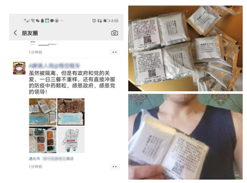 1月25日,通化市隔離群衆收到防疫物資,防疫藥品主要爲新綠色藥業提供的寒濕疫方中藥配方顆粒。