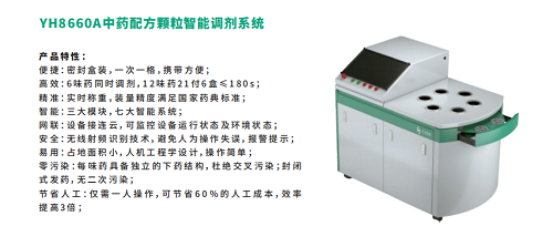 (YH8660A型)中藥配方顆粒智能調劑系統適用于各大中小型醫院、社區衛生院等醫療機構。