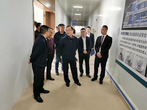 王副書記在聽取了項目總體規劃、建設進度等情況的介紹之後,深入江西新綠色藥業全自動化生産車間實地考察,並就中醫藥生産基地建設過程中遇到的困難和問題與陳廠長進行交流。