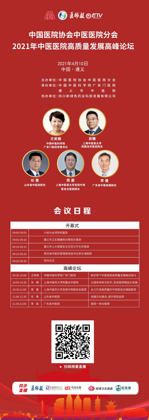 直播預告丨中醫大咖彙聚 暢談中醫院高質量發展大計