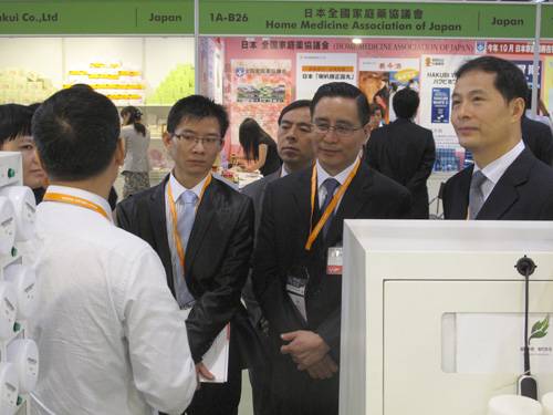 四川新綠色藥業周厚成董事長、國際業務部王東梅經理、市場部毛月竹副經理和相關部門的同事參加了曆時五天的盛會,主要對中藥配方顆粒、現代智能中藥房進行介紹和推廣。展會期間,前來我公司展台咨詢的人絡繹不絕,工作人員在生動、詳細介紹産品的同時,還將“現代中藥 現代生活”的健康理念傳遞給每一位參觀者。在11日展會開幕儀式後,國家中醫藥管理局副局長李大甯和香港中醫藥國際協會會長楊國晉一行專程到我公司展台參 觀,詳細了解現代智能中藥的工作流程,並給予了高度評價。.jpg)