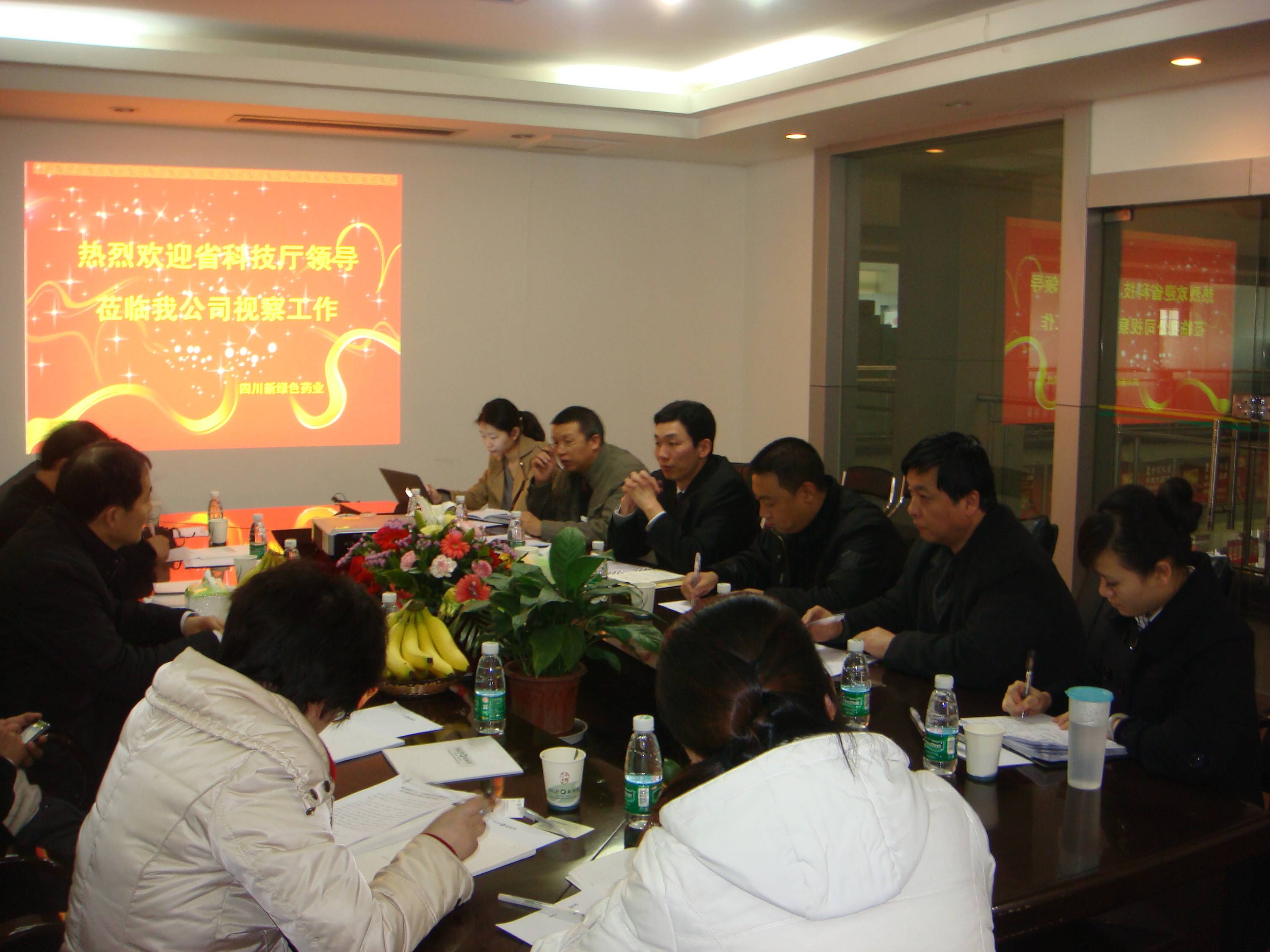 2010年12月28日,四川省科技廳周孟林副廳長帶領相關部門負責人莅臨四川新綠色藥業展開實地調研,公司總裁趙健熱情接待了調研組一行。調研組首先詳細詢問了我公司在研項目研究內容,並深入了解企業自主創新方面的發展狀況,特別是在醫藥技術産業發展過程中研發資金投入、技術人才引進和創新産品項目申報等方面的情況。在座談會上,公司總裁趙健、行政總監周巧敏、財務總監邱開榮、副總經理顧……