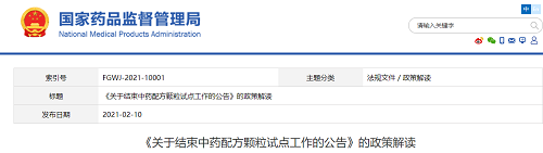政策解讀|《關于結束中藥配方顆粒試點工作的公告》