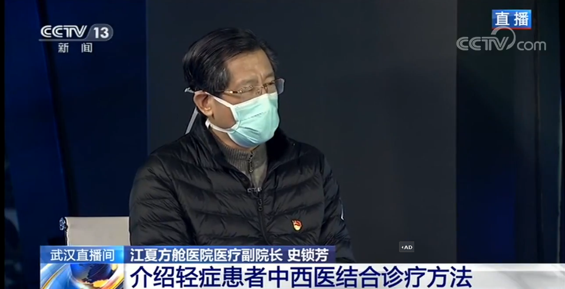 15日,央視戰疫情特別節目《武漢直播間》邀請了武漢市江夏方艙醫院專家組成員、方艙醫院醫療副院長、江蘇省中醫院主任史鎖芳做客演播室,介紹了目前武漢市首個以中醫爲主治療的方艙醫院的收治情況,重點介紹了武漢江夏方艙醫院如何運用中西醫結合治療,特別是發揮中醫治療特點對症下藥,保障輕症患者盡早康複。