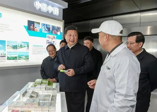 ↑2016年2月3日,習近平在江西江中集團江中藥谷制造基地考察。