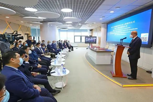 ↑2021年3月18日,在白俄羅斯首都明斯克,中白工業園首個中醫藥産業項目獲頒入園證書。該中醫藥項目由中國民政部下屬社會服務機構金台文院聯合相關單位投資成立,將在中白工業園分裝抗擊新冠病毒療效較好的中藥顆粒。